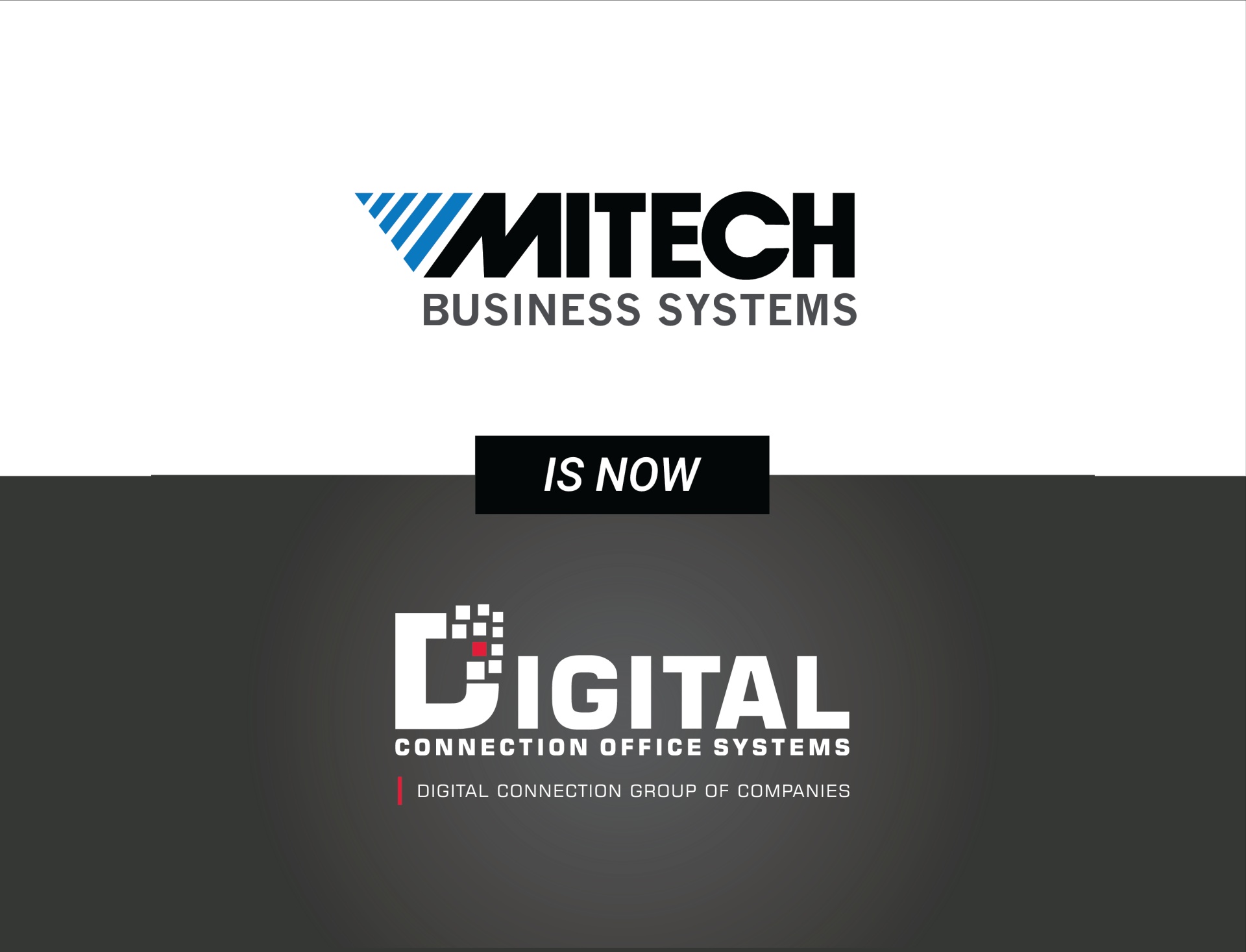 In this exciting new chapter, Digital Connection has completed its acquisition of Mitech Business Systems. This combination creates an organization even better able to serve our customers and compete in the global marketplace. For the past 40 years Mitech Business Systems has dedicated its service to rural communities. Known for their ability to anticipate customer needs and their exceptional local service, we are confident that this acquisition will contribute to the growth and success of Digital Connection for years to come.